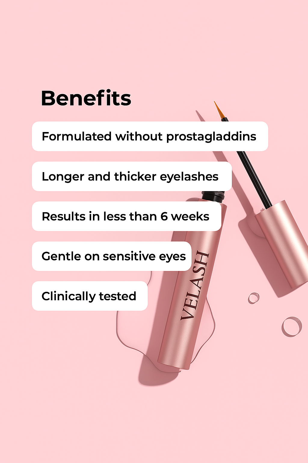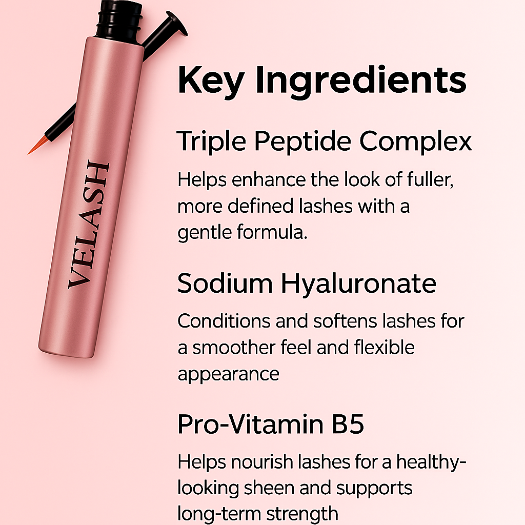 VELASH harnesses a triple-peptide complex to extend the lash growth phase and strengthen each strand. Panthenol and sodium hyaluronate lock in essential moisture, while pumpkin seed, green tea, and calendula extracts shield follicles from environmental stress. The prostaglandin-free, paraben-free, vegan formula is gentle on sensitive eyes and delivers antioxidant defense with every application.